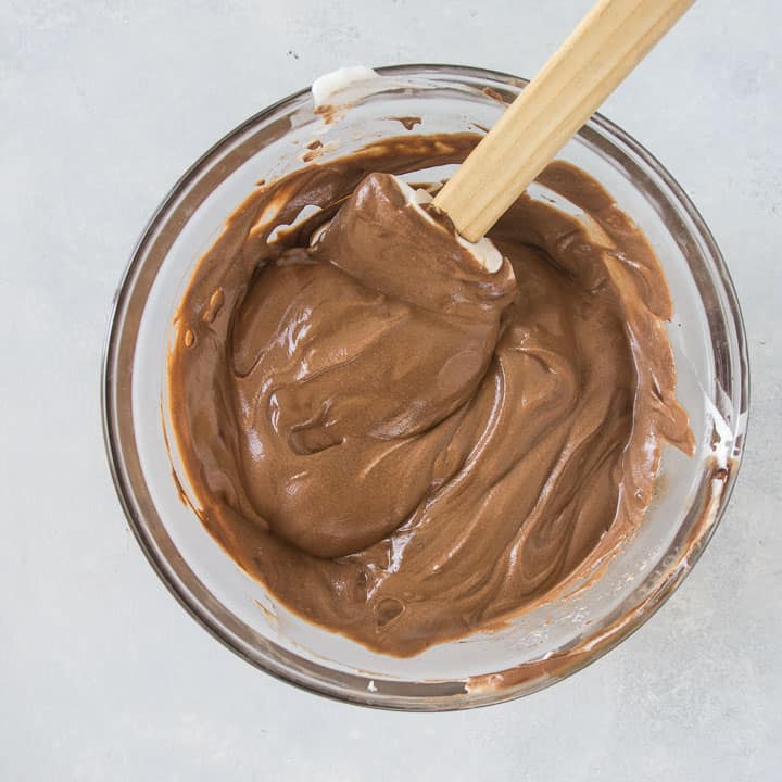 overhead shot of the mousse for the tuxedo cake